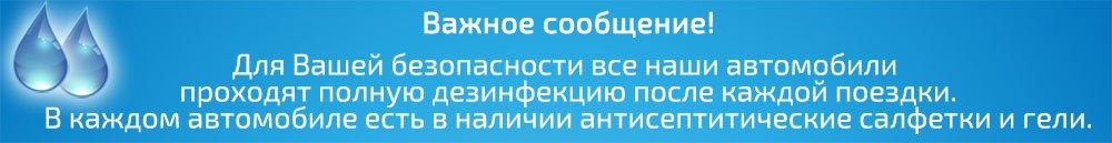 В наличии имеются такие марки, как: Toyota, KIA, SKODA, Volkswagen. Все машины от 2020 года выпуска, от 1 до 3 человек. Машины подаются в любую точку страны с индивидуальным водителем. В аэропорту вас встретит водитель с именной табличкой. При заказе машины класса Стандарт, подается свободная машина в этот день или классом выше.